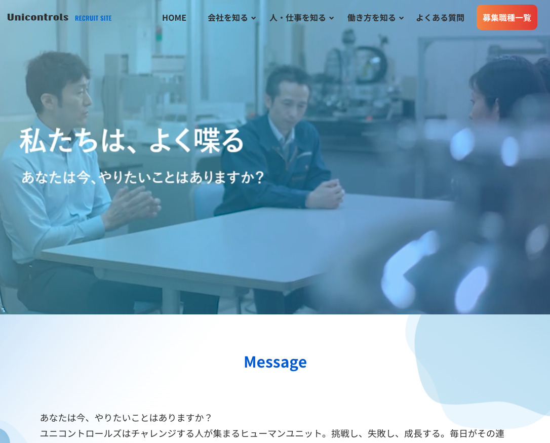 日頃より格別のご高配を賜り、誠にありがとうございます。 この度、ユニコントロールズ株式会社の採用サイトを公開いたしました。 採用情報をはじめ、代表からのメッセージや各職種の社員インタビューを掲載しています。 また、スペシャルコンテンツとして、社長と社員が本音で語る座談会や新潟工場と浦安本社の社員が語り合う座談会を掲載しています。 ぜひご覧いただけますと幸いです。 採用サイトからの、みなさまのご応募を心よりお待ちしております。