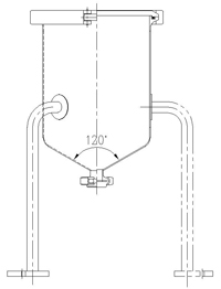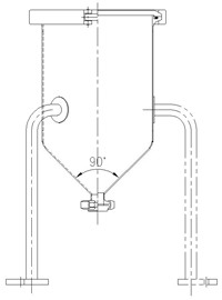 タンク底部に角度をつけることで、液が溜まりにくくなります。