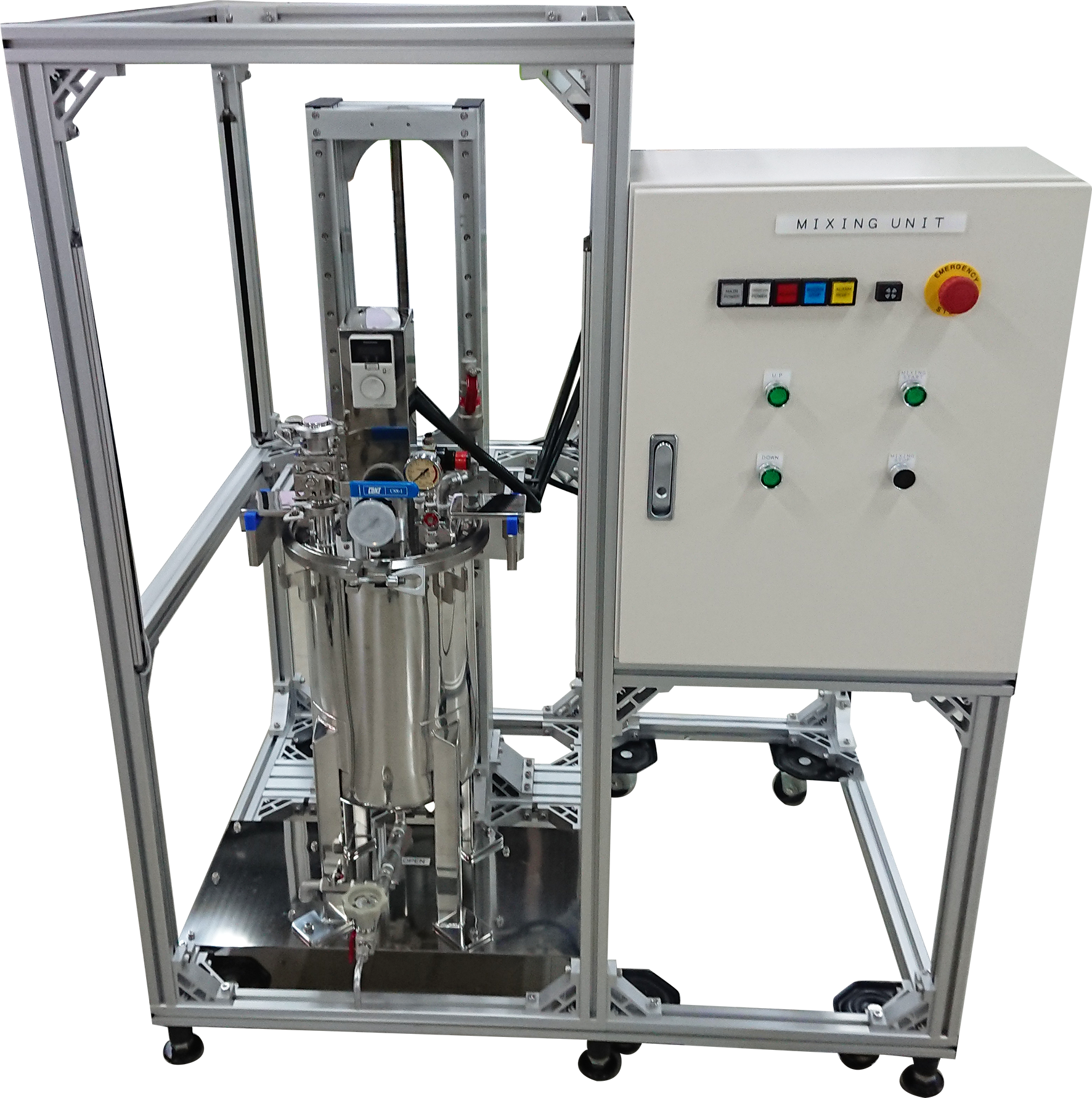 液体の調合・ろ過・撹拌・真空脱泡・温度調節・計量・供給を自動で行う制御ユニットです。移動式の小型ユニットのため、小ロット生産や研究開発用の設備としても有効です。