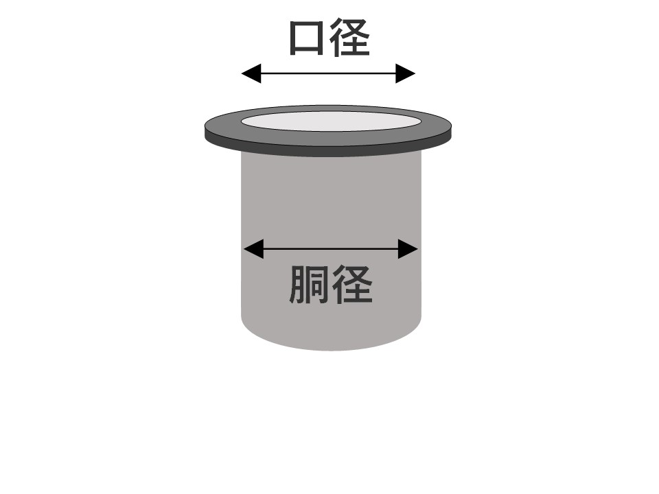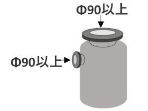 【マンホール・穴の設置不要な形状】 ※口径と胴径が同サイズの形状には、マンホールや穴の設置は不要です。 【口径=胴径→穴の設置不要】