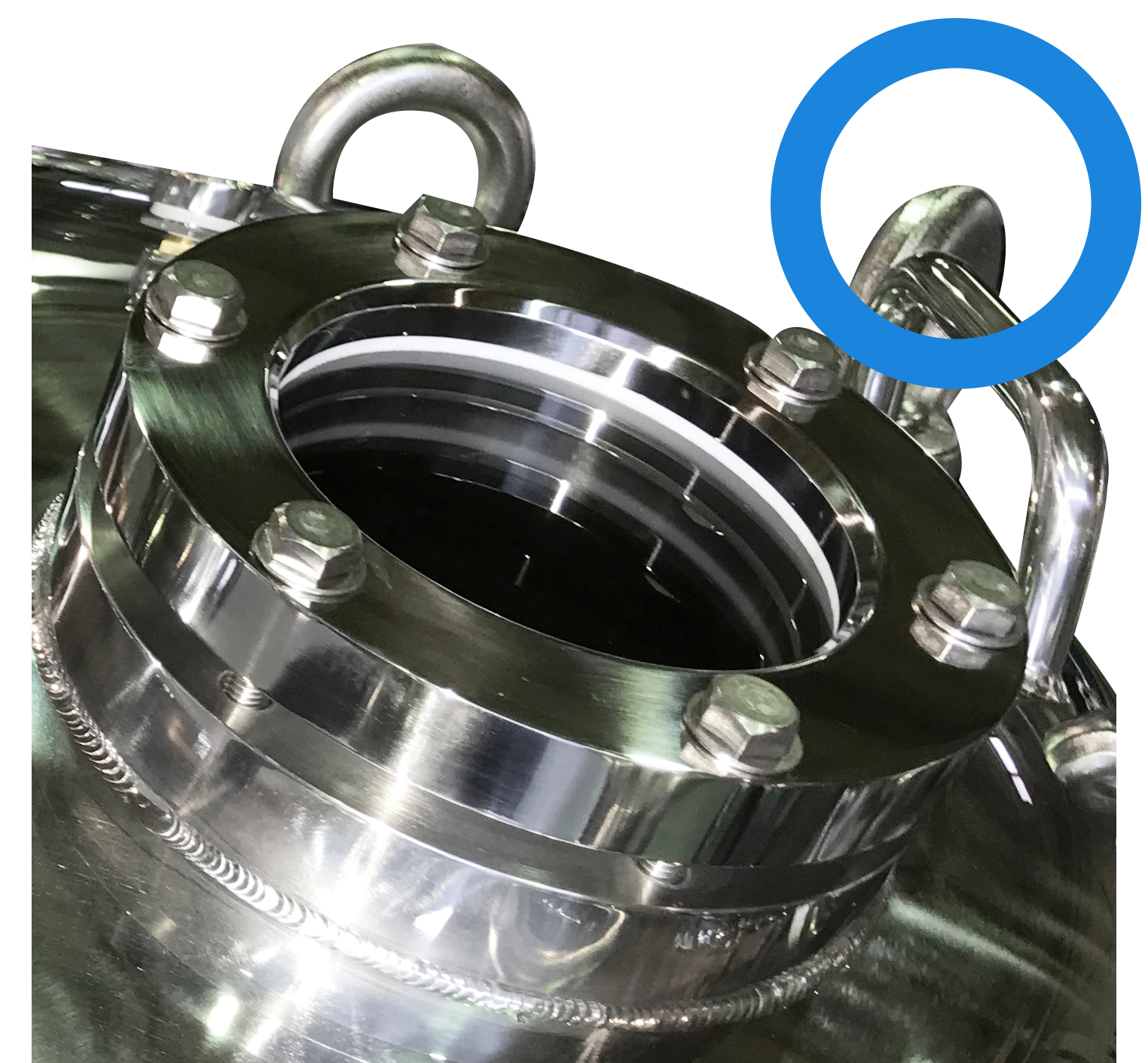 ・丸型フランジ固定式 : タンクや蓋に取り付け使用可能 ・丸型以外の覗き窓 : 基本的に使用不可 ※覗き窓を付ける場合は、ガラスの強度計算書(曲げ試験成績書)を協会へ提出し検定を受けます。