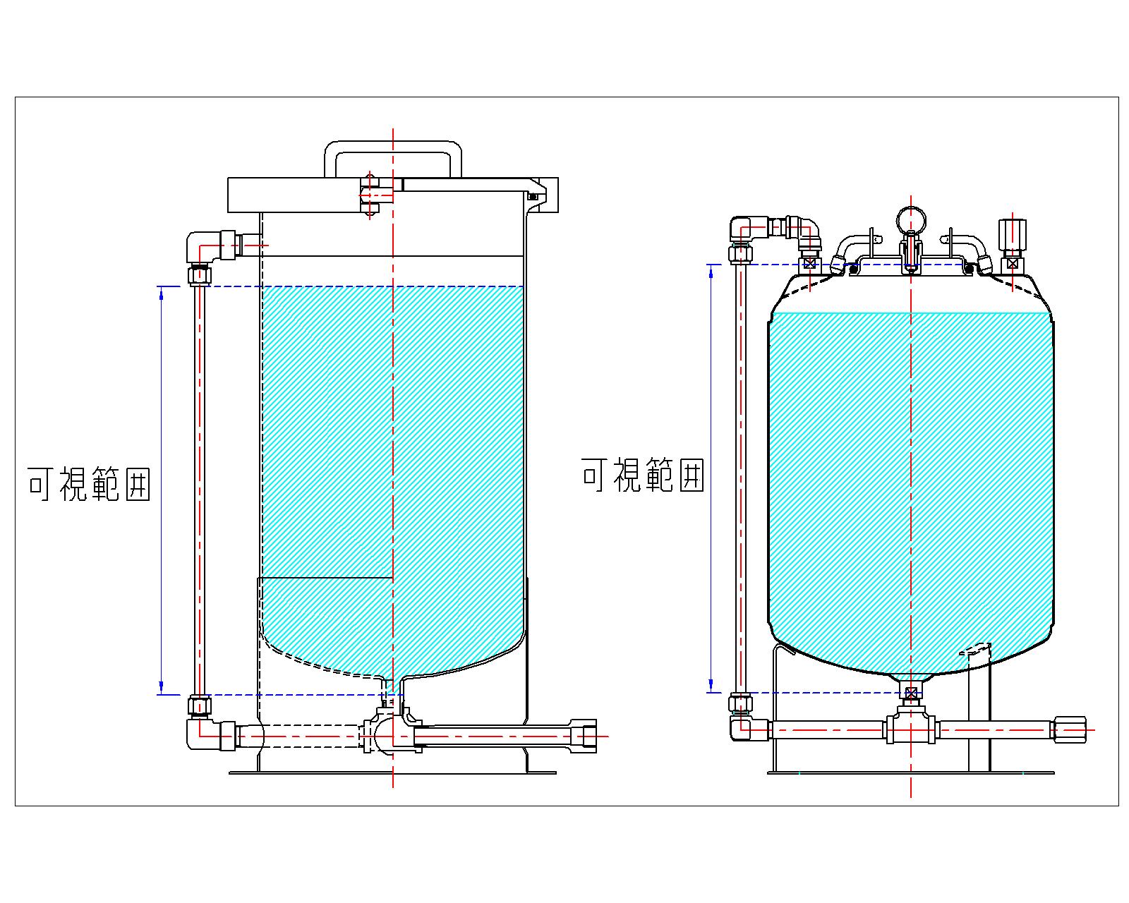 ゲージ固定用のチューブ継手は、タンクと着脱可能な『ねじ込みタイプ』、着脱不可能な『溶接タイプ』があり、タンク形状はボトムポート・トップポート、どちらの形状にも取り付けることができます。標準チューブ径は外径φ8×内径φ6ですが、液体の粘度が高い場合などには太いチューブへの変更も可能です。 外付けのレベルセンサをチューブに取り付けることで、液量を検知し信号を発することができるため、タンク内液体の残量不足(液切れ)やタンクへ液体を投入する際の過剰供給を防止できます。