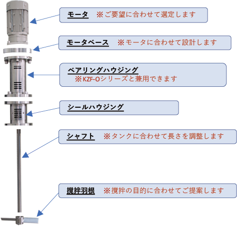 『液体の性質』『撹拌をする目的』『タンクの仕様』『使用環境』に応じて、最適なモータを当社が選定いたします。
